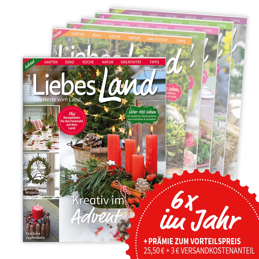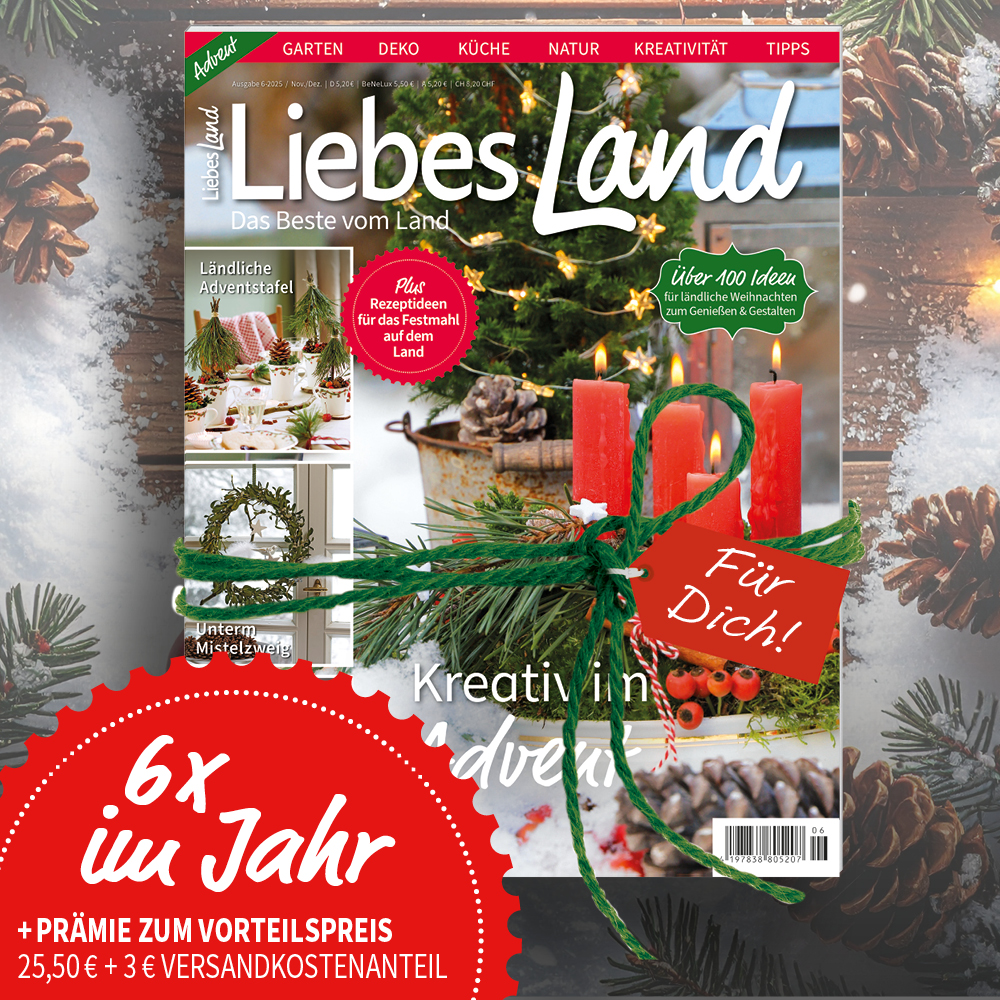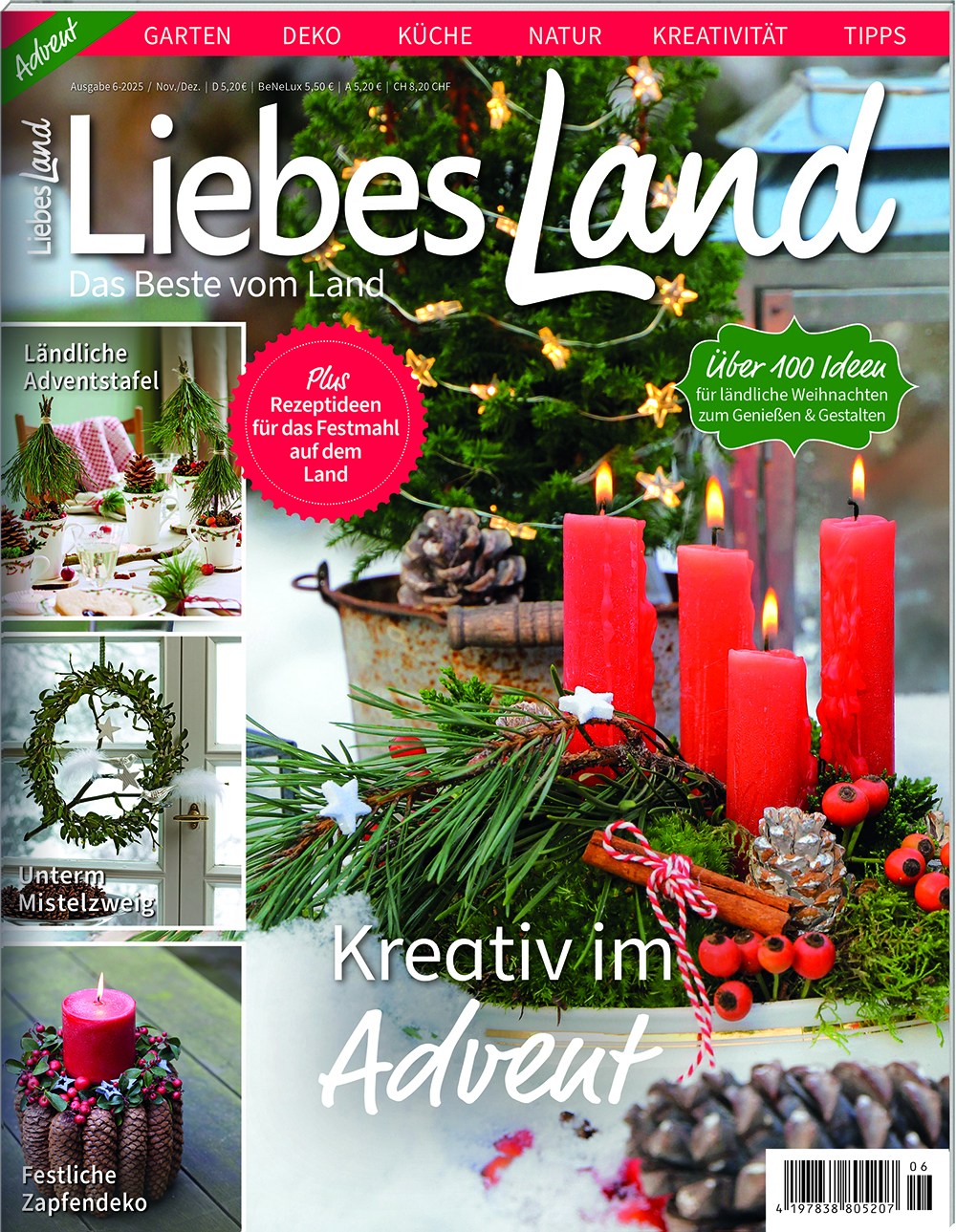Das neue Liebes Land Magazin für Juli/August 2025 ist ab dem 01. August 2025 im Handel erhältlich. Ihr könnt es aber auch über unseren Shop versandkostenfrei innerhalb Deutschlands bestellen!