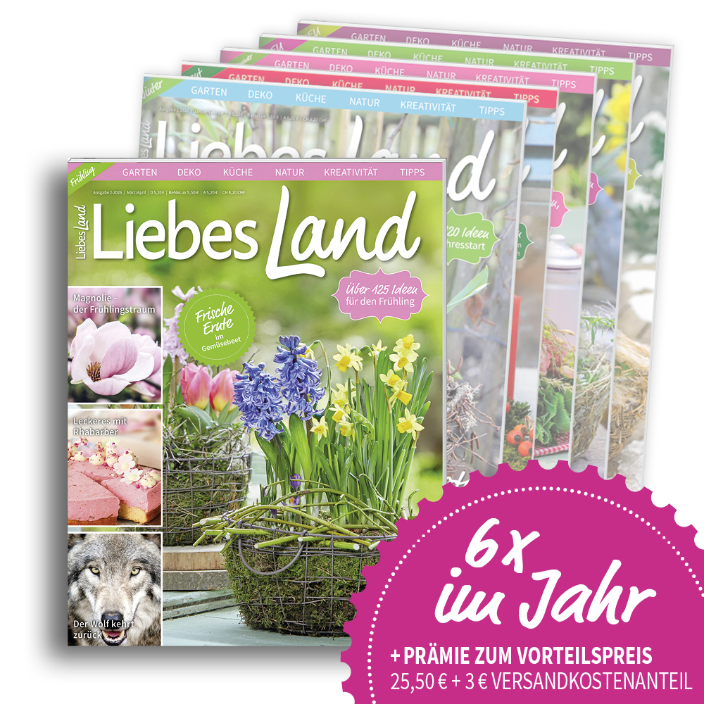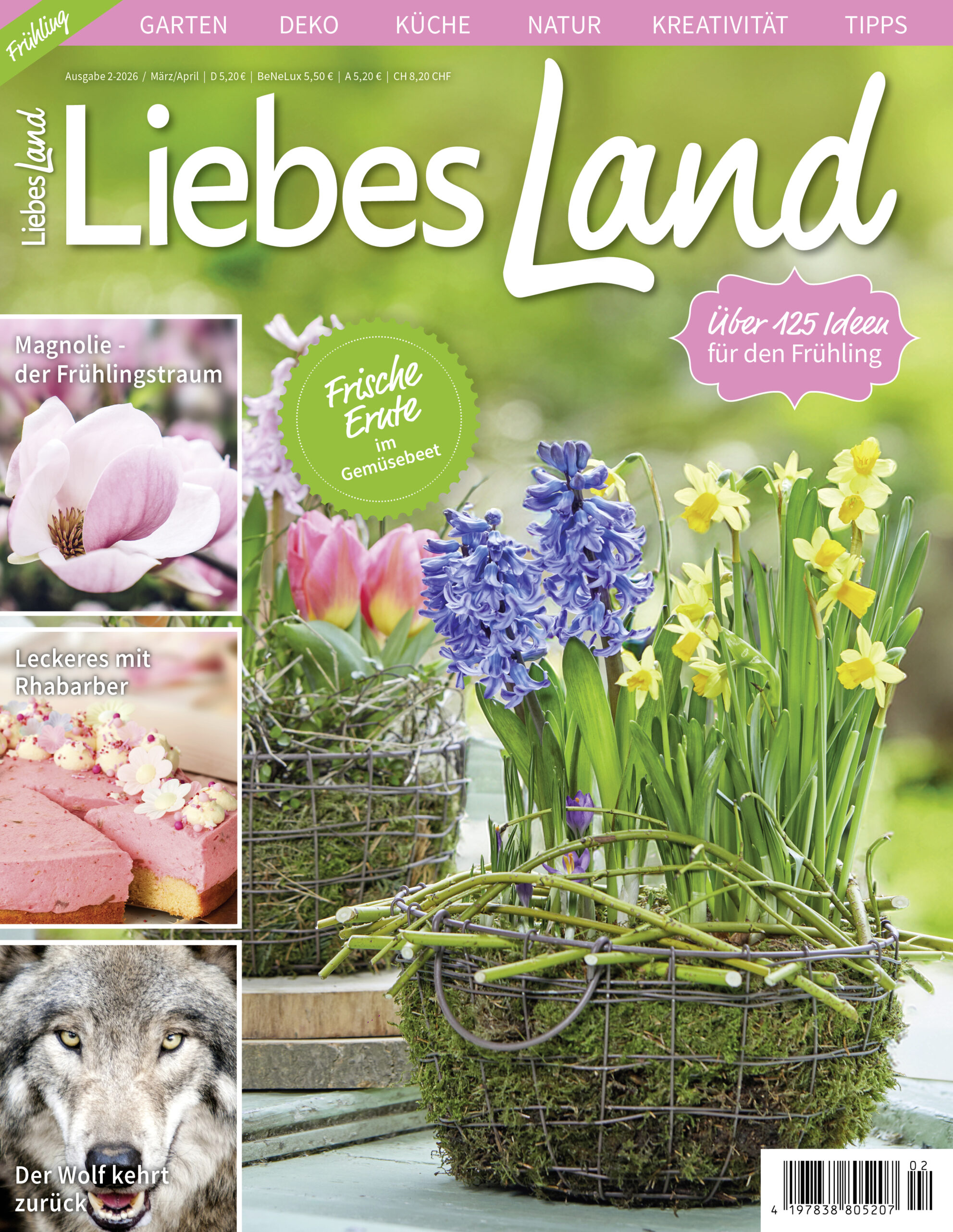 Das neue Liebes Land Magazin für Januar/Februar ist ab dem 06. Februar 2026 im Handel erhältlich. Ihr könnt es aber auch über unseren Shop versandkostenfrei innerhalb Deutschlands bestellen!